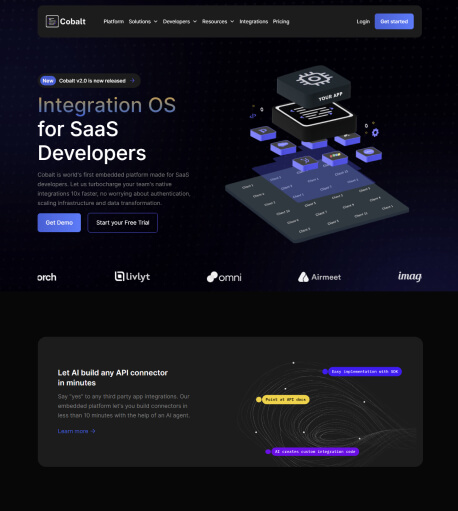 Cobalt is an embedded integration platform that lets SaaS companies launch 2-way native integrations in days rather than months.